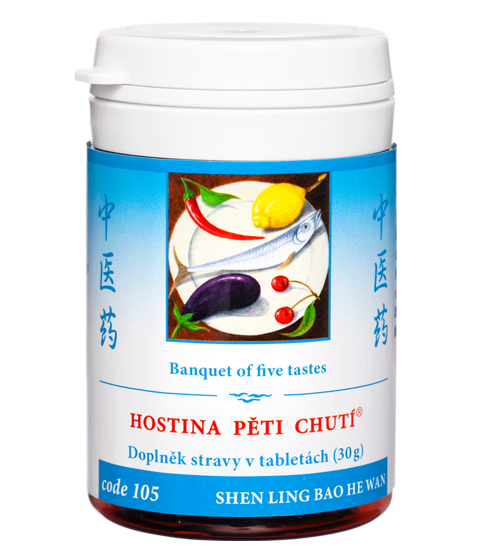 Popis dle TCM - Jedná se o modifikaci originální tradiční čínské bylinné směsi SHEN LING BAO HE WAN, která je upravena na dnešní poměry. Tato bylinná směs je užívána velice často, neboť odstraňuje stagnaci potravy JI SHI ze žaludku WEI, která následně způsobuje nadýmání, pocit plnosti v břiše a špatné trávení jako je říhání, pálení žáhy nevolnost, měkká stolice apod. Obzvláště patrné jsou tyto potíže u starších lidí (trávicí systém je již „unaven“) či naopak u dětí (trávicí systém ještě není rozvinut). Avšak zdá se, že v dnešní době by potřeboval tuto formuli téměř každý... Nebo znáte snad ve svém okolí někoho, kdo dodržuje všechny zásady správné výživy, stravuje se střídmě, pravidelně a v klidu?! Rovněž i byliny, obsažené ve směsi odvádí tzv. vlhké horko SHI/RE (vzniká díky dlouhodobé stagnaci potravy JI SHI) ze středního ohniště XIA JIAO, posiluje slezinu PI QI XU a žaludek WEI QI XU a harmonizuje trávení. Odblokovává i stagnaci energie čchi QI ZHI v žaludku WEI a rozprouďuje energii čchi QI ZHI v oblasti středního ohniště ZHONG JIAO.